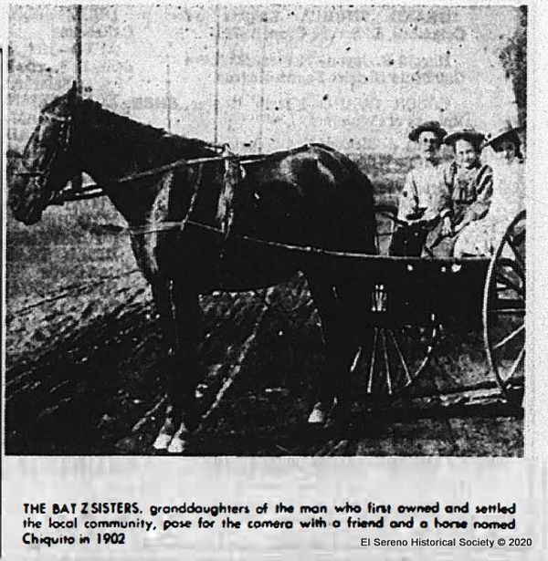 The Batz family home on the historic Rancho Rosa Castilla property, with original adobe built by the Franciscan missionaries of the mission San Gabriel about 1776. Sheep raising was an important part of the local economy under the Batz family, originally of Basque heritage.
