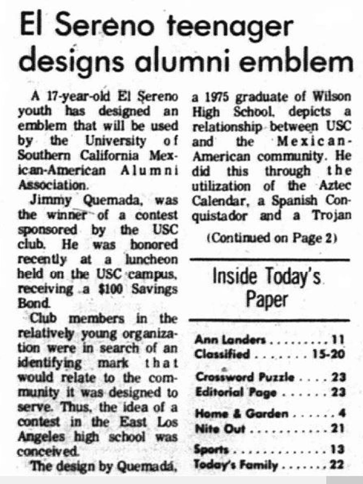 As we deal with surreal times of Shelter-In-Place in March 2020, here's a bit of history to distract our minds from what is going on. The year was 1975 when Jimmy Quemada entered a contest sponsored by the USC Mexican American Alumni Association to create an emblem for the recently created club, founded in 1973.